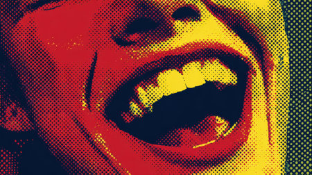 A close-up view of a person showing a wide smile, radiating happiness with bright colors enhancing the joyful moment.
