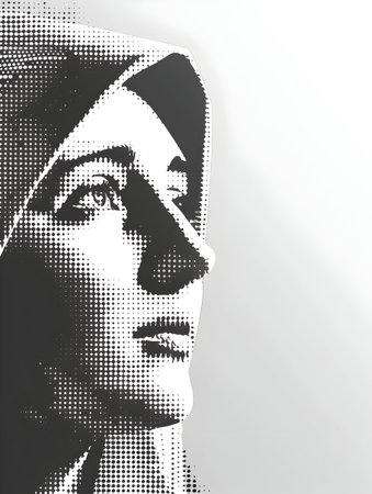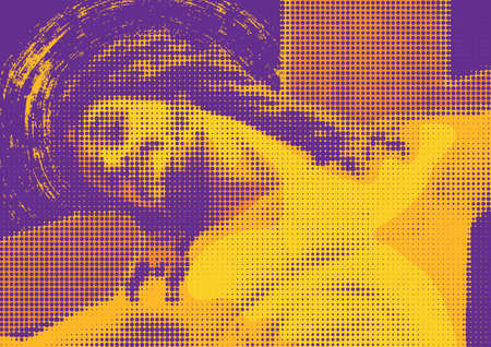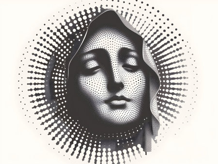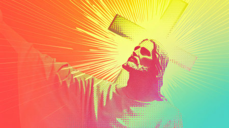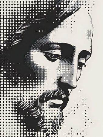 A stark halftone style image of Jesus Christ evoking deep reverence.