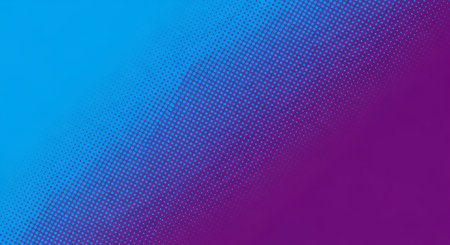 A vibrant purple and light blue halftone abstract background image.