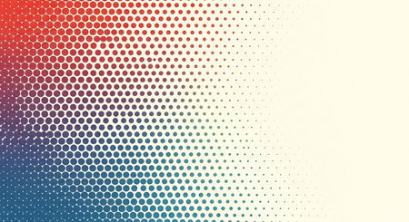 Creative halftone texture in vibrant red and teal colors showcasing circular patterns