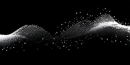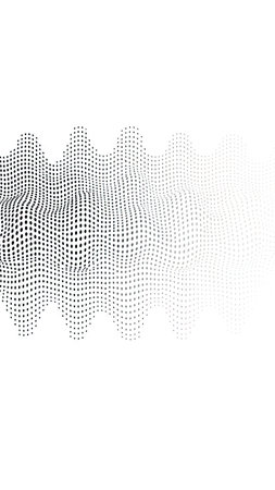 An artistic representation of sound waves depicted in a halftone dot pattern, using black dots on a white background to create a visual rhythm and flow.