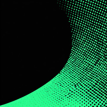 Monochrome abstract background. Spotted halftone effect in green tone. Design element for book covers, presentations layouts, title backgrounds. Raster clip art.