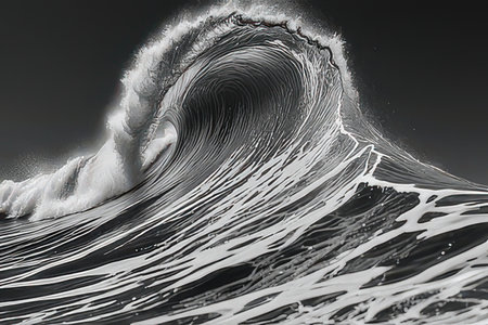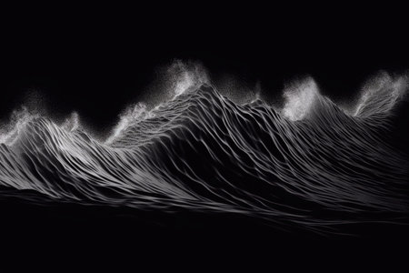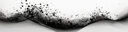Black and white abstract illustration features flowing waves with dotted patterns, creating depth and movement, perfect for various design applications and backgrounds, AI generated