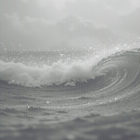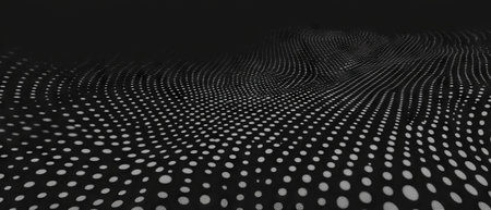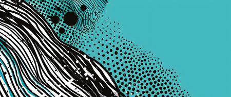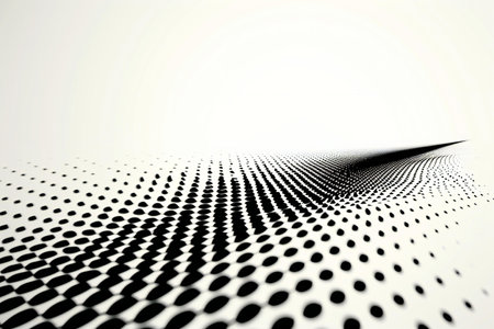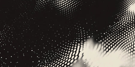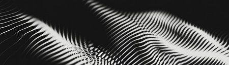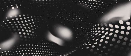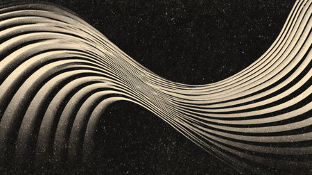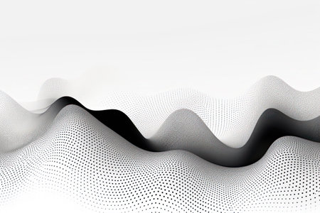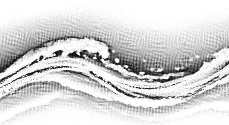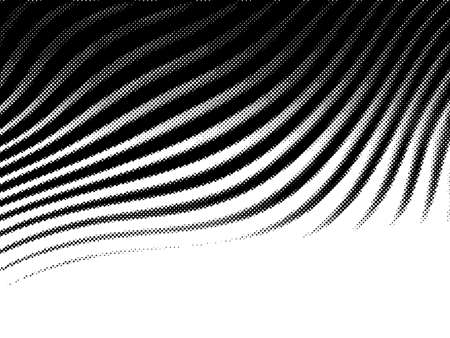 Wavy lines in halftone texture create a flowing visual effect in black and white