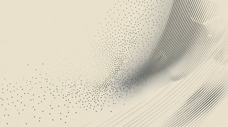 Swirling lines and scattered dots create an engaging abstract design with a soft beige backdrop, suggesting movement and elegance.