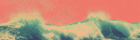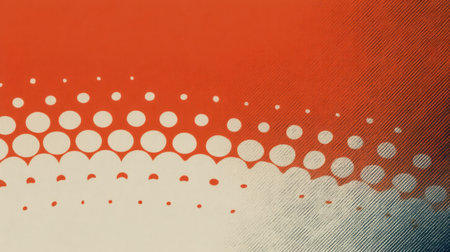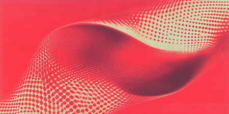 Abstract halftone texture in vivid red and cream creating dynamic wave patterns
