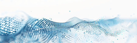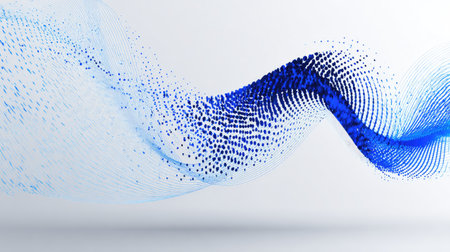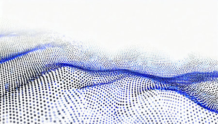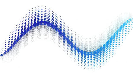 This abstract image features a flowing wave of blue dots arranged in a smooth gradient, creating a dynamic and modern visual effect for various creative projects.