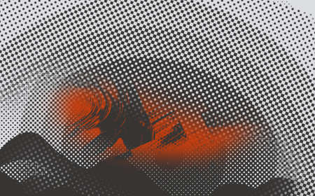 Halftone in abstract style. Geometric retro banner vector texture. Modern print. White and black background. Light effect