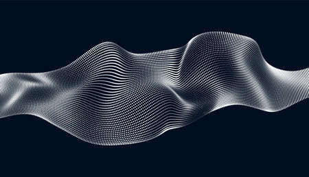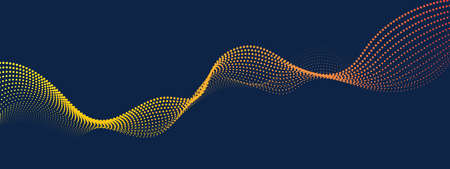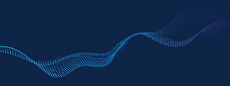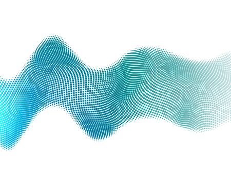 Abstract wave with halftone dots on blue background. Vector illustration.