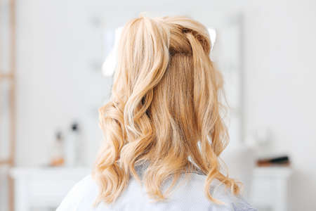 Young woman with stylish hairdo in beauty salon