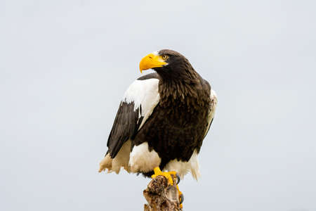 The Stellers sea eagle is a very large bird of prey in the hawk family. Background with selective focus and copy space