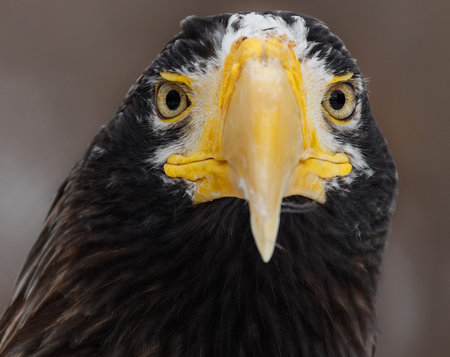 Close up portrait of a Steller's sea eagle, also known as Pacific sea eagle or white-shouldered eagle, is a large diurnal bird of prey in the family Accipitridae, Haliaeetus pelagicus