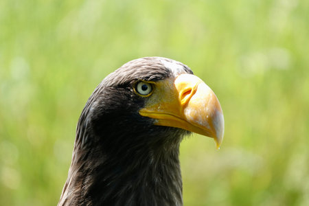 Head of steller's sea eagle on green background.