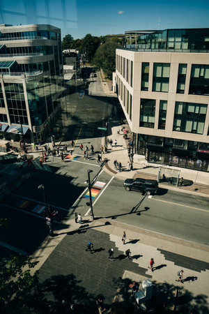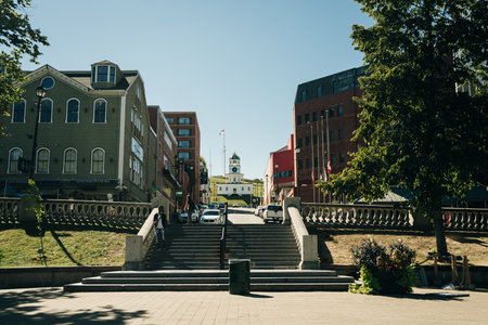 Halifax, Canada - September 22, 2018: View of downtown buildings, with locals and visitors, in Halifax, Nova Scotia, Canada