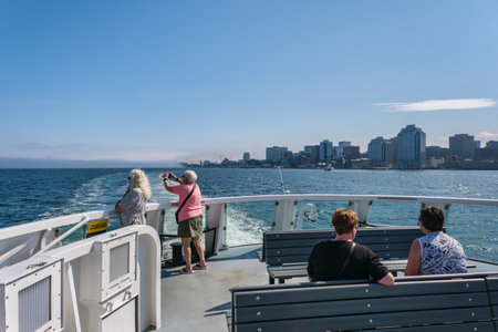 Halifax, Canada - 10 August 2021: Passengers on a Halifax Transit Ferry going to Dartmouth