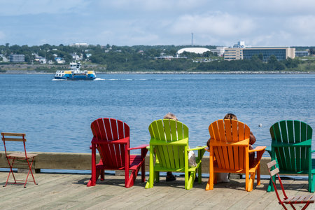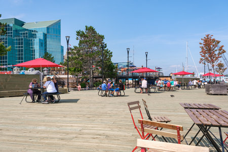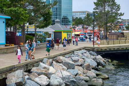 Halifax, Nova Scotia, Canada - 10 August 2021: People enjoy sunny day at Halifax Harbourfront, Canada