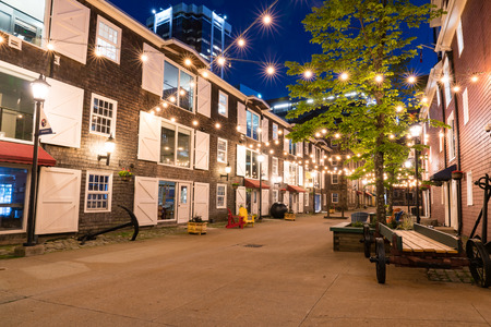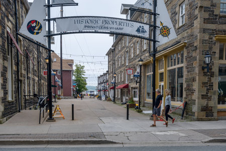 Halifax, Nova Scotia, Canada - 10 August 2021: The Historic Properties warehouses on the Halifax Boardwalk in Halifax
