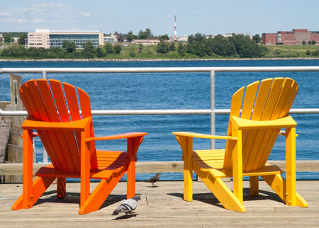 Two colorful chairs on Halifax city promenade (Nova Scotia, Canada).