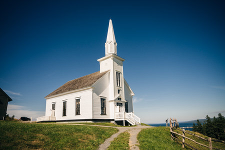 Church at roadside, Cabot Trail, Cape Breton Island, Nova Scotia, Canada