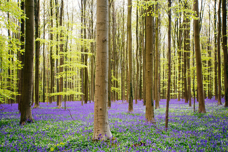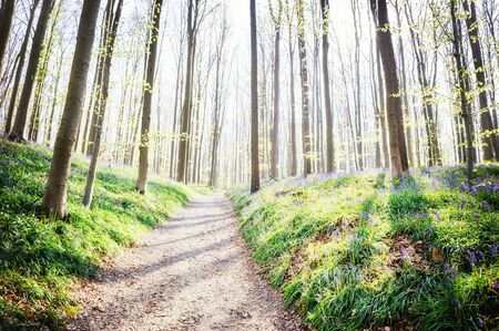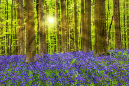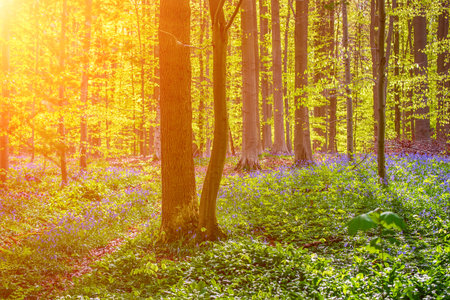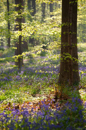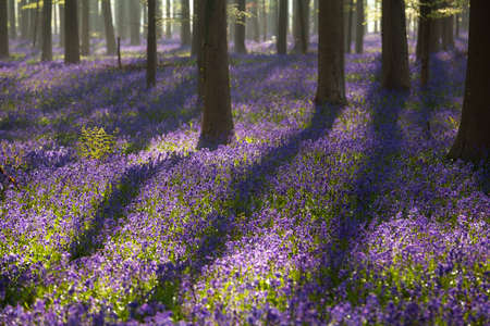 morning sunshine in spring flowering forest, Hallerbos, Belgium