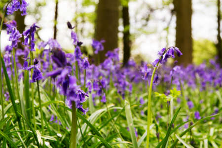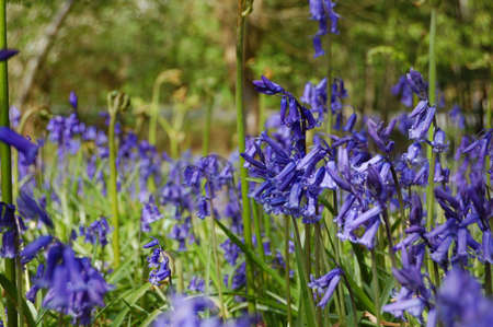 Bright bluebells growing on an english woodland floor