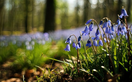 Beautiful bluebells blooming in springtime in a forest