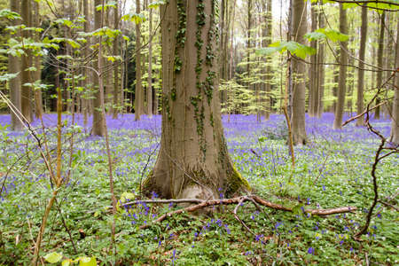 Hallerbos, beech forest in Belgium full of blue bells flowers.