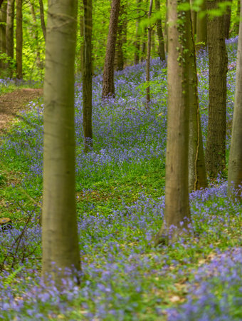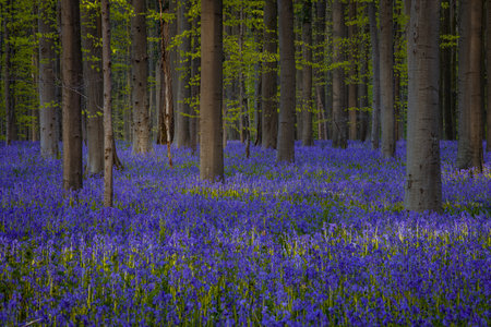 Magic blue forest near Bruxelles, springtime flowering, Belgium