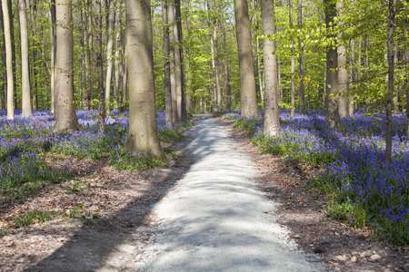 Footpath in bluebells forest in spring, Hallerbos, Belgium