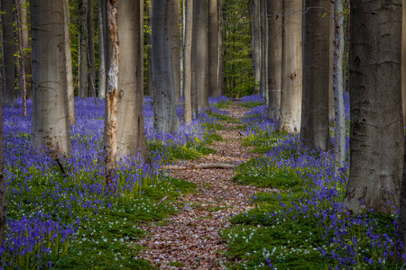 A path in a bluebell forest Tranendal teardrop valley Hallerbos Belgium