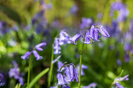 Blossoming lovely spring violet-blue forest flowers - common bluebells or hyacinthoides, Belgium