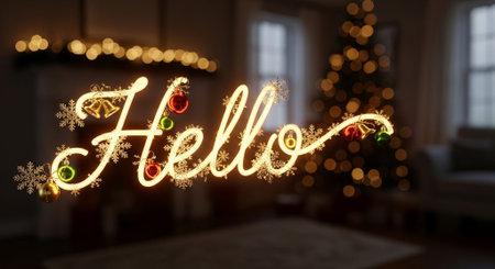Yellow capsule shape featuring the word hello. In black typography on a bright yellow background with abstract elements, symbolizing friendship, greetings, and positive interaction