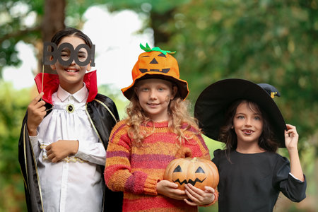Children dressed in costumes celebrate Halloween