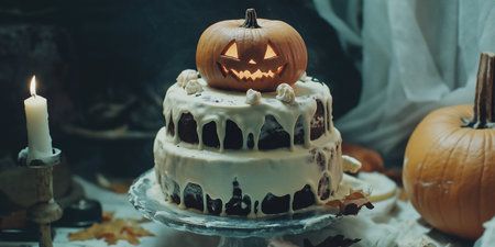 Autumn Halloween cake background.