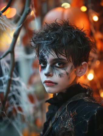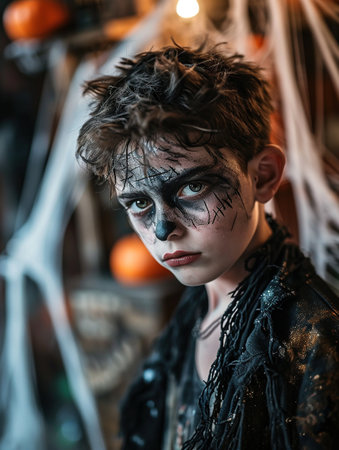 Halloween. Portrait of a scary zombie boy in a haunted house.