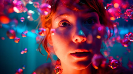 Young woman experiencing hallucinations after taking drugs. Substance abuse concept.