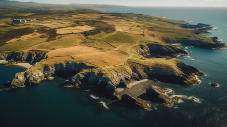 Generative AI : Aerial view above peninsula off the Atlantic Coast of Northern Ireland UK