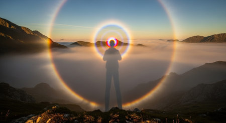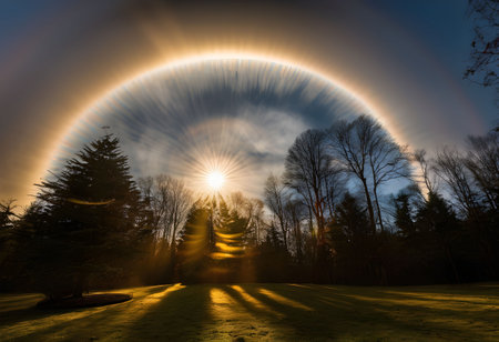 dramatic sun halo with vivid rainbow colors, created with generative ai