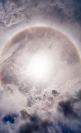 Rainbow around the sun through the clouds