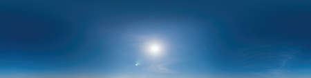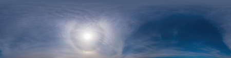 clear blue sky with halo sun. Seamless hdri panorama 360 degrees angle view with zenith for use in 3d graphics or game development as sky dome or edit drone shot