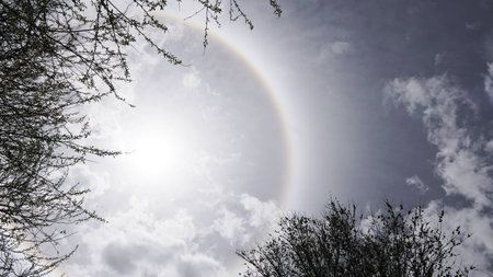 Sun rainbow circular halo phenomeno.