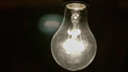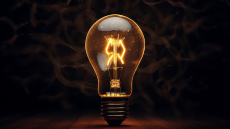 Glowing Incandescent Light Bulb in Dark Background, Symbolizing Bright Ideas and Creative Thinking