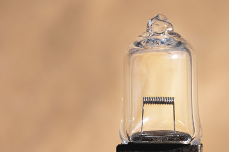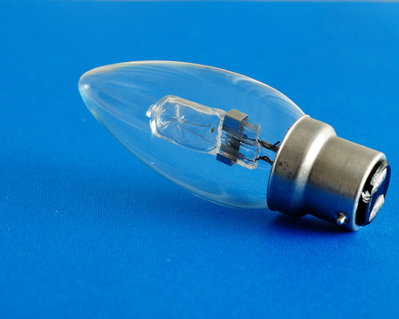 Closeup of a lit halogen bulb. While more energy efficient than traditional light bulbs, are far less efficient than fluorescent lamps or LED.