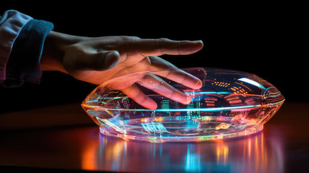 Hand touch Holographic User Interface, Digital and Innovation Technology.