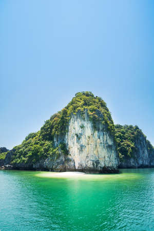 Hidden tropical paradise beach in Halong bay, Vietnam