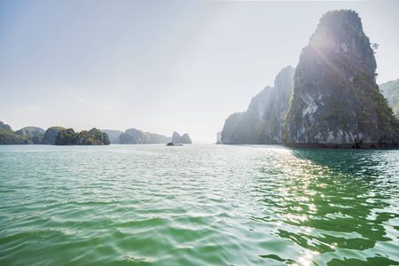 Picturesque sea landscape with limestone mountains Ha Long Bay, Vietnam