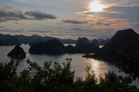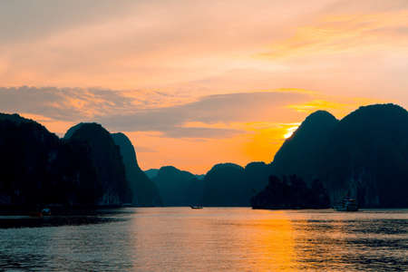 Amazing sunset over Ha Long Bay, Vietnam