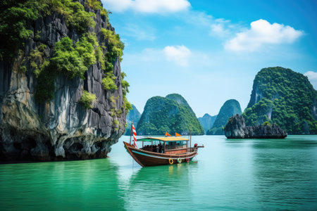 Halong bay world heritage site limestone islands and emerald waters in vietnam, travel destination