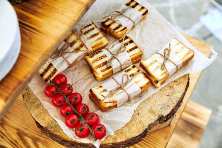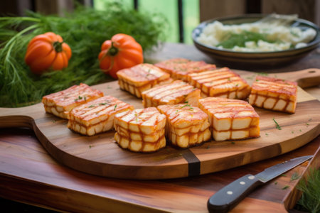 halloumi slices ready for grilling on cedar plank, created with generative ai