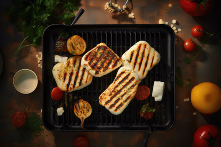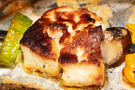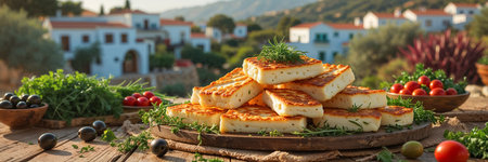 Grilled Halloumi Cheese, Traditional Greek Barbecue, Mediterranean Meal, Bbq Hellim Halloumi Cheese, Abstract Generative AI Illustration